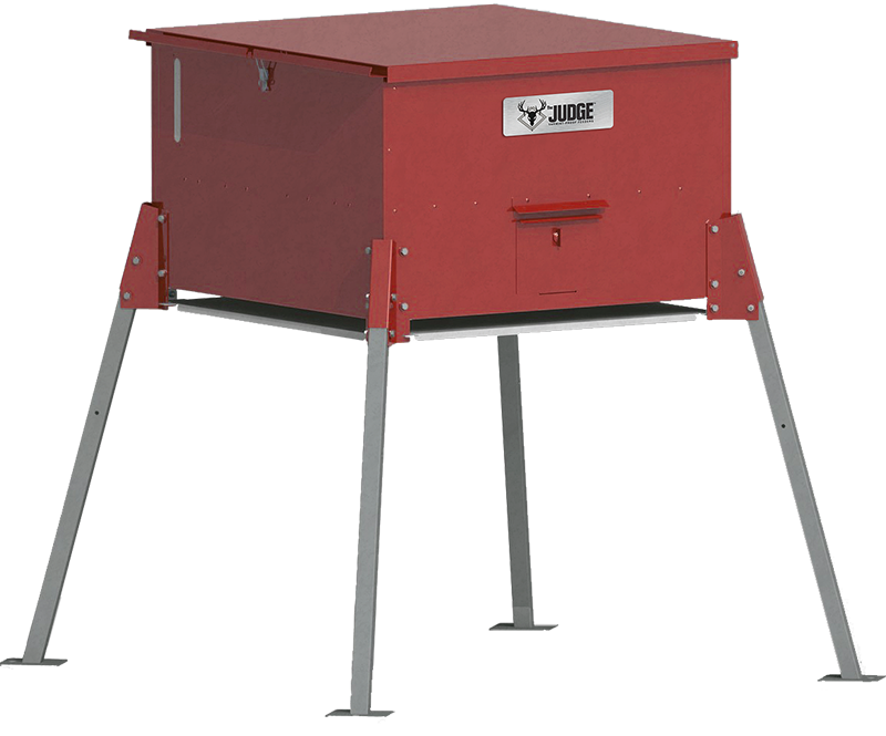 Tired of varmints? The Judge's heavy-duty steel varmint-plate protects the spinner and keeps varmints at bay. Feed shoots out through a 1.25" opening, but varmints can't get in!